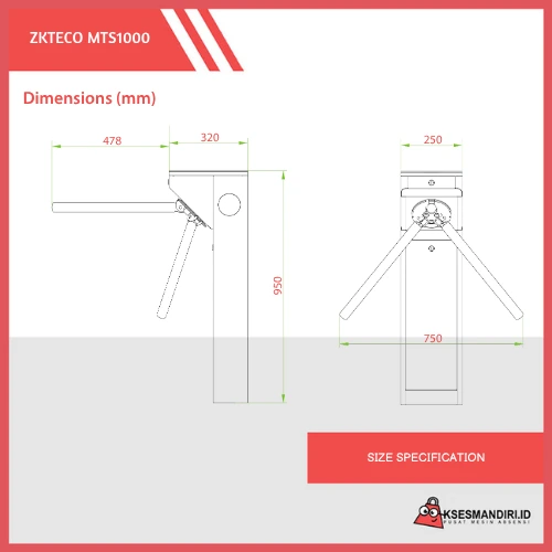 ZKTECO MTS1022 Tripod Turnstile Gate Single Lane