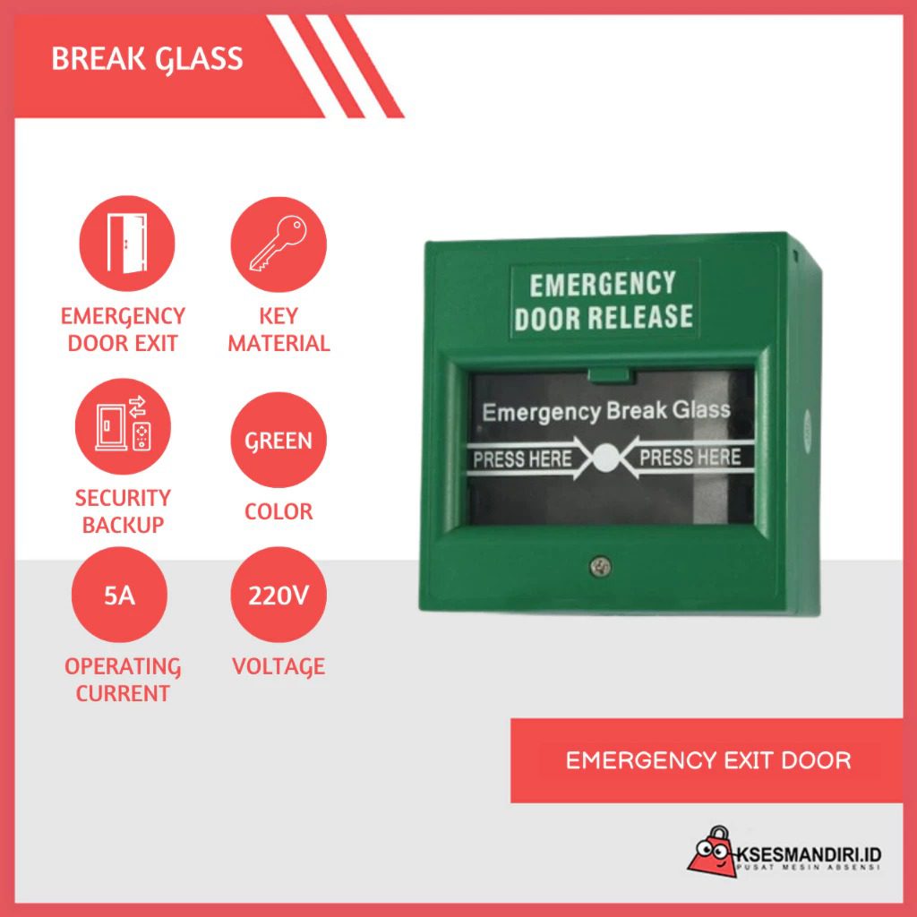 Fungsi: Membuka pintu darurat secara manual dengan menekan kaca