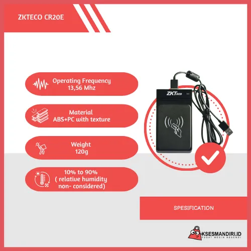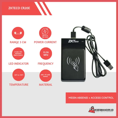 Fungsi: Membaca & menulis data pada kartu proximity, enrolment user ke software manajemen (absensi & akses kontrol)