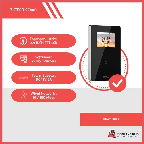 ZKTeco SC800 adalah terminal akses kontrol RFID berbasis Linux dengan desain kokoh dan tahan cuaca (IP65 & IK04). Dilengkapi layar warna 2.4 inci dan touch keypad tersembunyi untuk pengalaman unlock tanpa sentuh. Mendukung berbagai teknologi kartu RFID termasuk HID Prox, HID iClass, dan DESFire EV2, serta komunikasi lengkap TCP/IP, RS485, Wiegand, dan Wi-Fi opsional. Ideal untuk penggunaan di area outdoor dengan keamanan data terenkripsi AES-256.